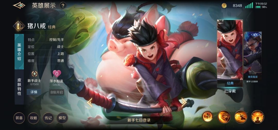 能吃能睡一直是猪八戒引以为豪的优点,但大家都知道八戒那肥胖的身躯抗打承伤才应该是它的最大特色。没有大招的时候,八戒就像是个小孩子,体格脆弱。这个时候补兵发育和对面玩捉迷藏,才是孩子该做的事情。释放大招后的猪八戒具有肥胖的身材和吓人的面容,分别给予了他高额的抗伤和输出,瞄准敌方输出一顿胖揍,大招强化时间即将结束的时候,果断逃离。