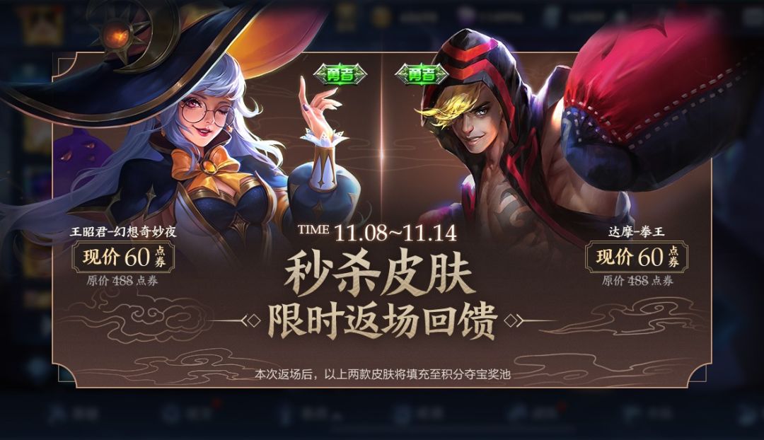 9. 11月5日不停机更新公告:王昭君-幻想奇妙夜&达摩-拳王 限时返场 戳我传送