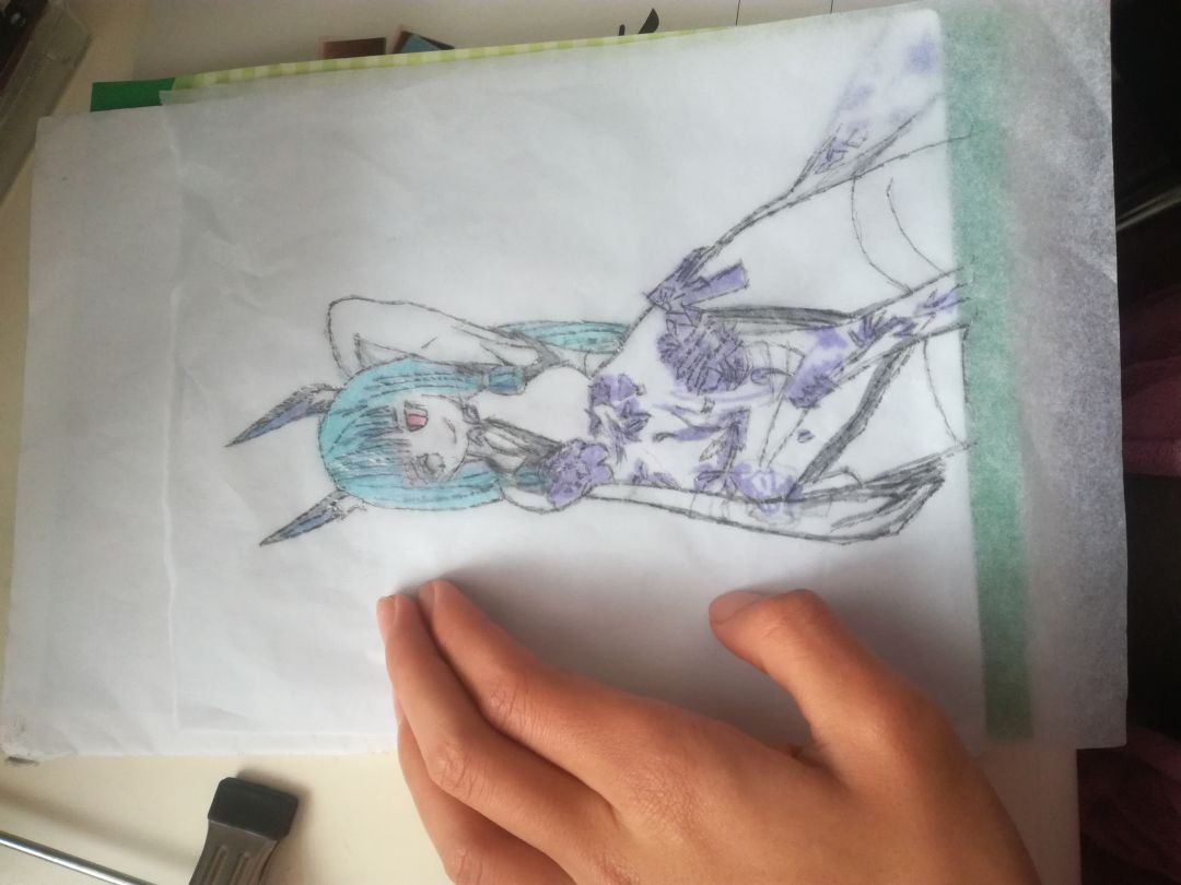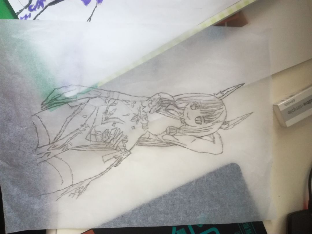 然后再把临摹纸和原稿叠在一起。