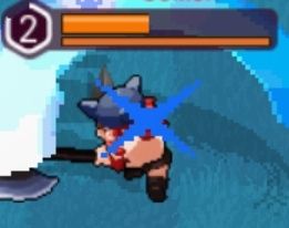 触发条件:对方血量小于百分之50就会触发蹦蹦跳跳技能(下图是触发后的效果,身上有个蓝色X)