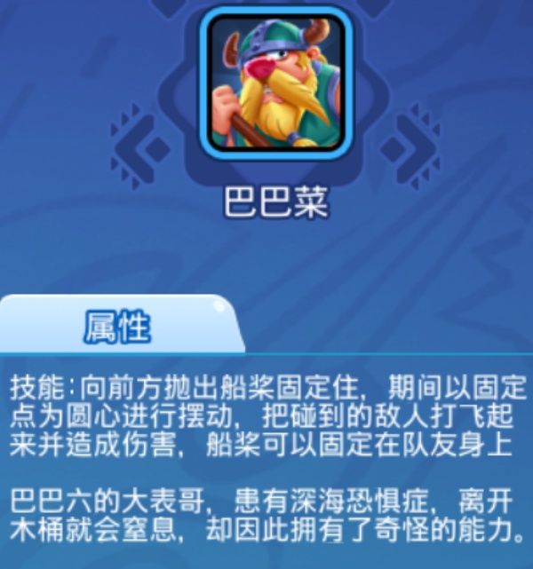 巴巴菜独有的技能可以连续攻击,很容易把敌方搞到半血然后触发效果(可以当辅助挂在队友身边,充当一个输出+蹦蹦跳跳buff)