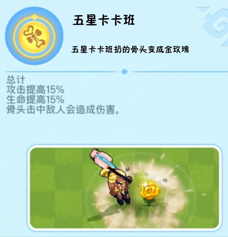 五星卡卡班的玫瑰也可以触发血爆技能,搭配蹦蹦跳跳,伤害爆炸(不开黑的话不推荐用卡卡班,输出是狠,但是很难保命)