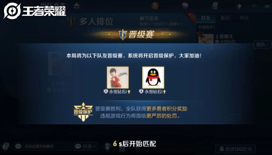 多人排位:组队排位时,队友也能收到晋级赛提醒哟~