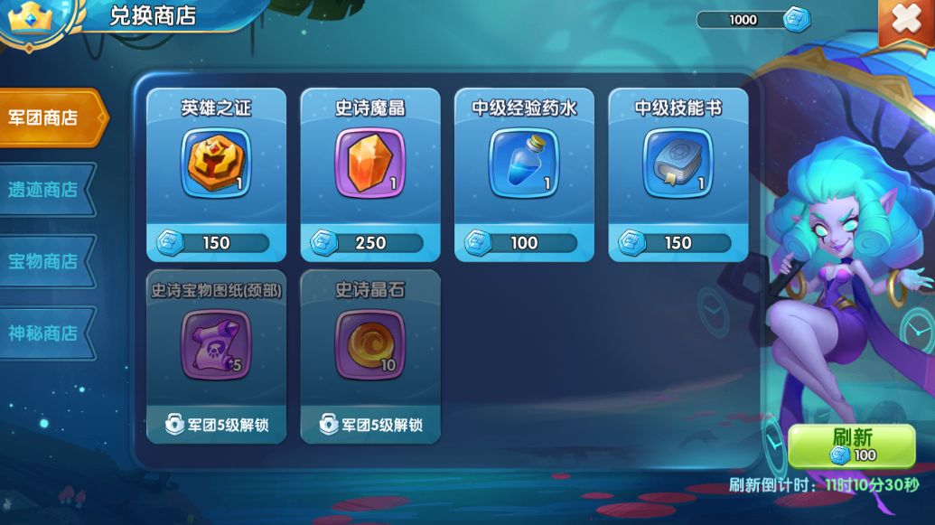 【军团商店】参与军团各项活动获得的军团贡献可以在军团商店购买道具。