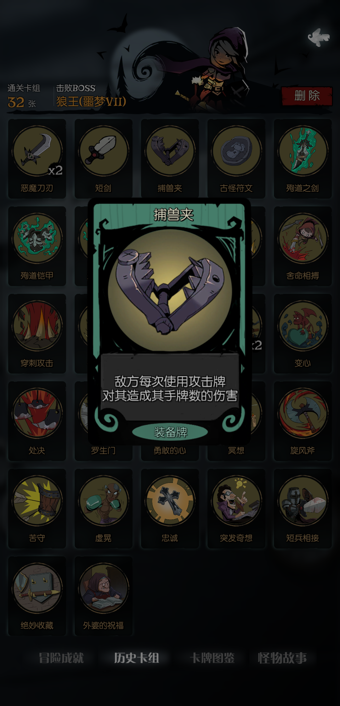 核心卡牌:捕兽夹,古怪符文,罗生门,穿刺攻击,可以不用旋风斧