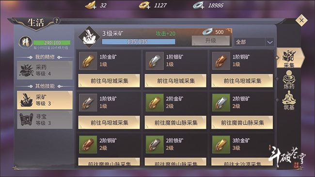 采矿主要附加的属性是攻击力,到达第3级时,会增加20点攻击力,对于爆发输出类的职业最为适合,例如灵族、雷族。这个副职的优点主要在于后期颇为省钱,大家到了后期,等级提升会变得缓慢,功力提升也变得困难,所以大家往往会砸钱在装备上面,极力渴望打造出全身橙装,引领斗气大陆,而采矿副职正好填补了这个空缺。在打造装备时,需要的材料矿石是最多的,所以大家选择这个副职的话,全身橙装决不在话下。