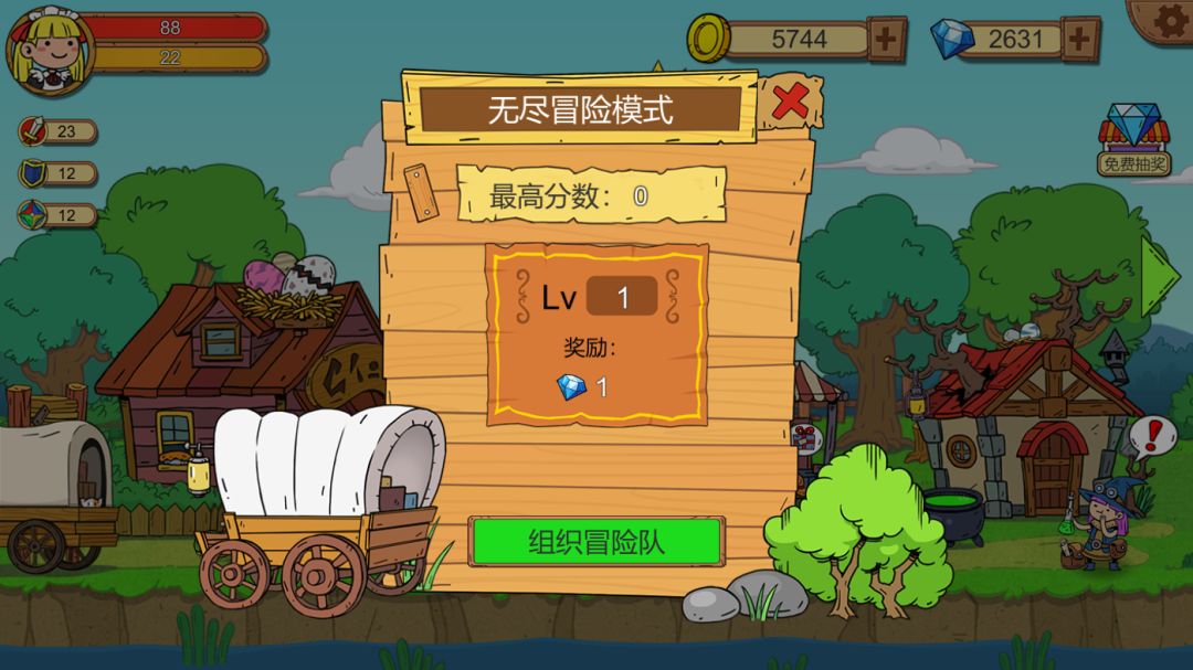 首先自然是如何开始无尽大冒险啦,由于旅程过于凶险,所以我们不建议新人冒险者贸然参加,只有在你完成故事1-5的挑战之后才可以报名。所以为了尽早加入到无尽冒险的行列,还请各位多多努力推任务哟!一旦你解锁了无尽模式,就可以点击村子角落的大篷车,这时就可以开始组织属于你的冒险队啦!