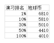 每月地球币收入分别为6810(1%),5810(10%),5010(30%),4410(50%),4010(100%),括号内为数据演习结算排名。