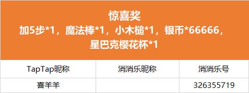 所有评论楼层中,随机挑选1名送出:加5步*1,魔法棒*1,小木槌*1,银币*66666,星巴克樱花杯*1