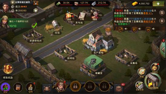 4、生存营地注重生产,可建造资源建造及加快资源产出及采集速度的建筑,同时可建造更多的仓库及城防保护设施。