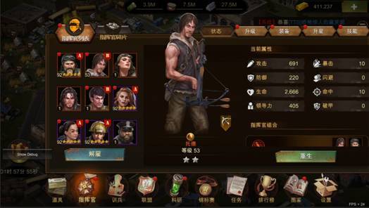 升级指挥官,可以提高指挥官的基础属性和带兵数量,经验值的来源为讨伐僵尸获得。