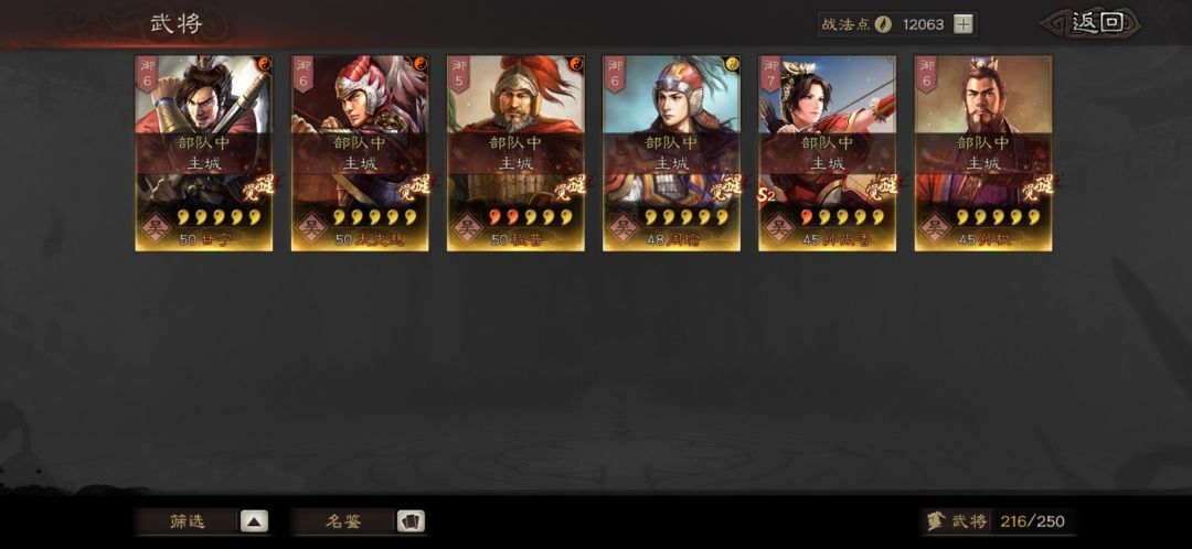 大神配下阵容,吴弓原来是甘宁太史程普,现在想改改,主要是求求战法搭配