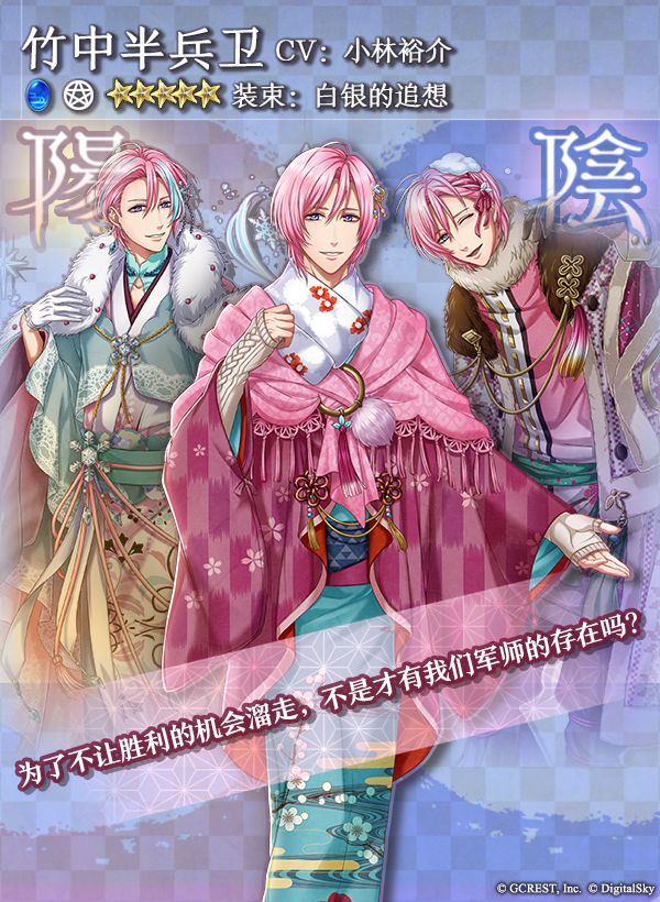 ★5 竹中半兵卫(CV:小林裕介) 装束:白银的追想,掉落关卡:周回四至周回六。