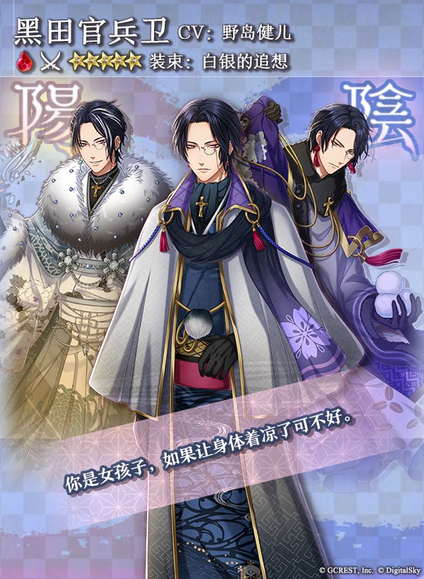 ★5 黑田官兵卫(CV:野岛健儿) 装束:白银的追想