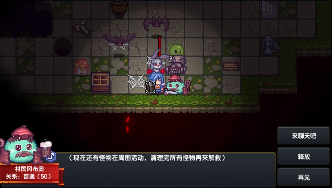 铁憨憨的村民冈布奥请求我们的协助恢复森林和平,在地宫中当你遇到村民冈布奥,可以使用投掷快乐药剂可以下蛋,从从让他成为你的队友。