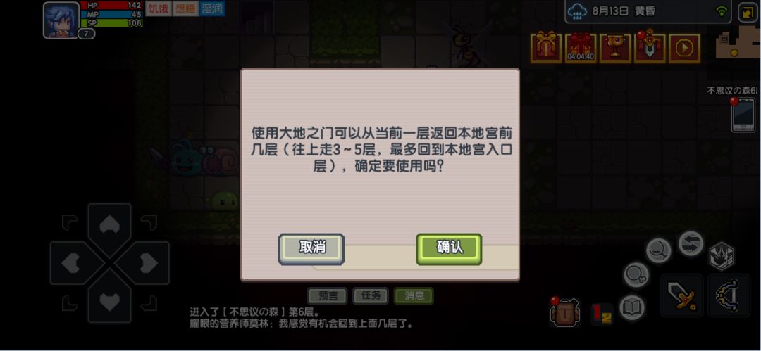 每一层冒险家会有几率遇到特殊道具——大地之门,来源于《不思议迷宫》的奇特设定,当你使用它,会让你回退到特定层数,继续这一段奇妙的旅途!
