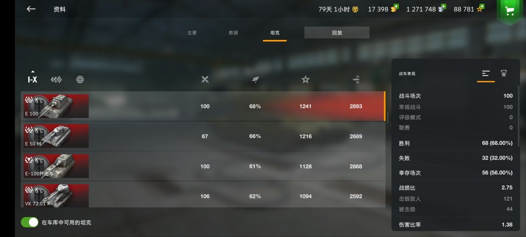 4、加了血量以后,E100已经是个变态肉的重坦了,所以该进攻的时候就顶上去抗,挨几炮死不了。