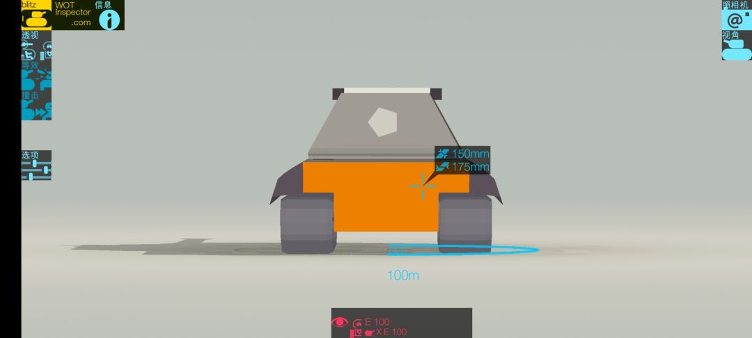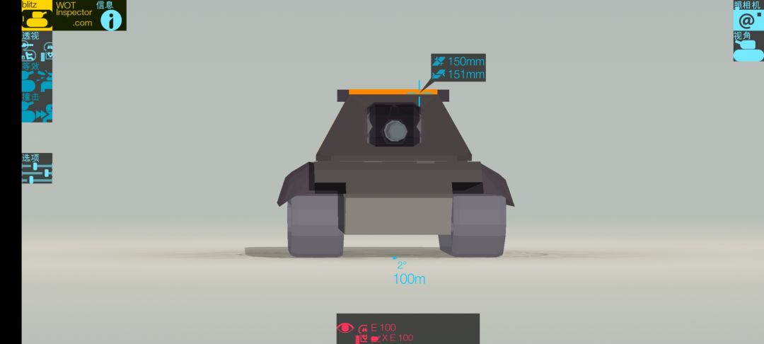但是,作为一个全向防护极好的重坦,E100的首上是个黑洞,侧面超大范围的裙甲在实战中防护能力超群,裤裆软但是可以藏,脸很脆却可以摆。因此,E100是一辆比较依赖地形卡点,对个人技术要求较高的重坦。