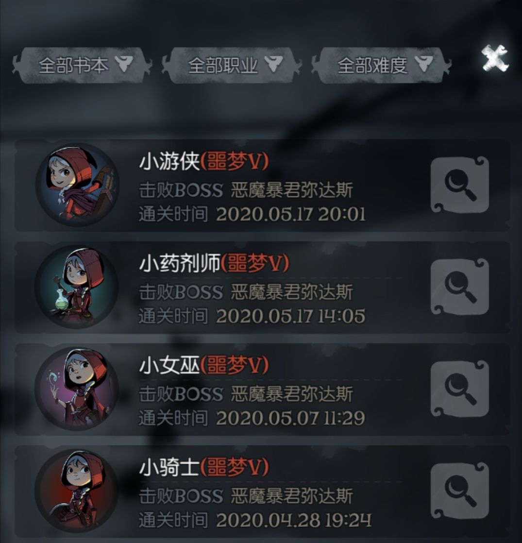 四人组各装备通关记录: https://www.taptap.com/topic/11873679