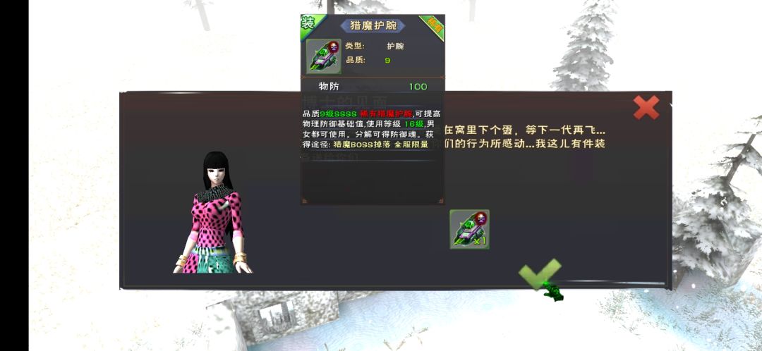 最终奖励一顶博士帽(留着有用)和一件猎魔护腕