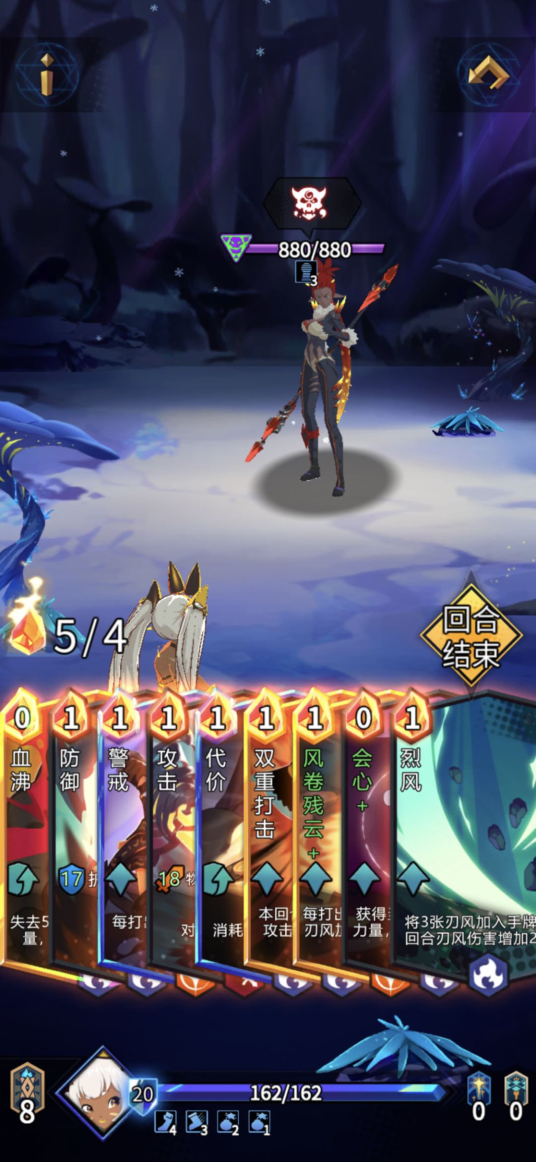 一关boss 垃圾 注意有时候他会攻击你但是不提示 最好是带卡包打 最优选风卷残云 然后是 血费 和回合结束不掉护甲那个