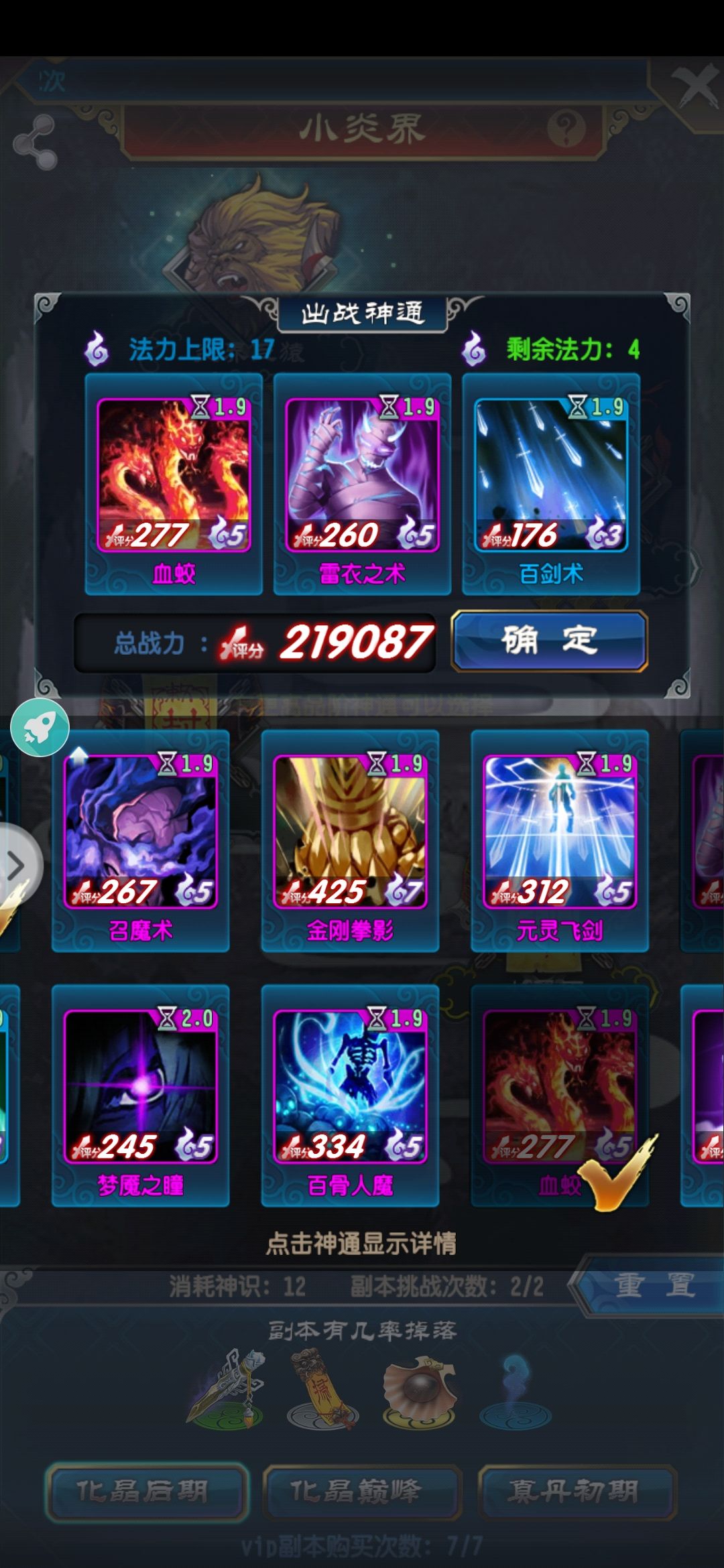 化晶初期一般的技能搭配如图