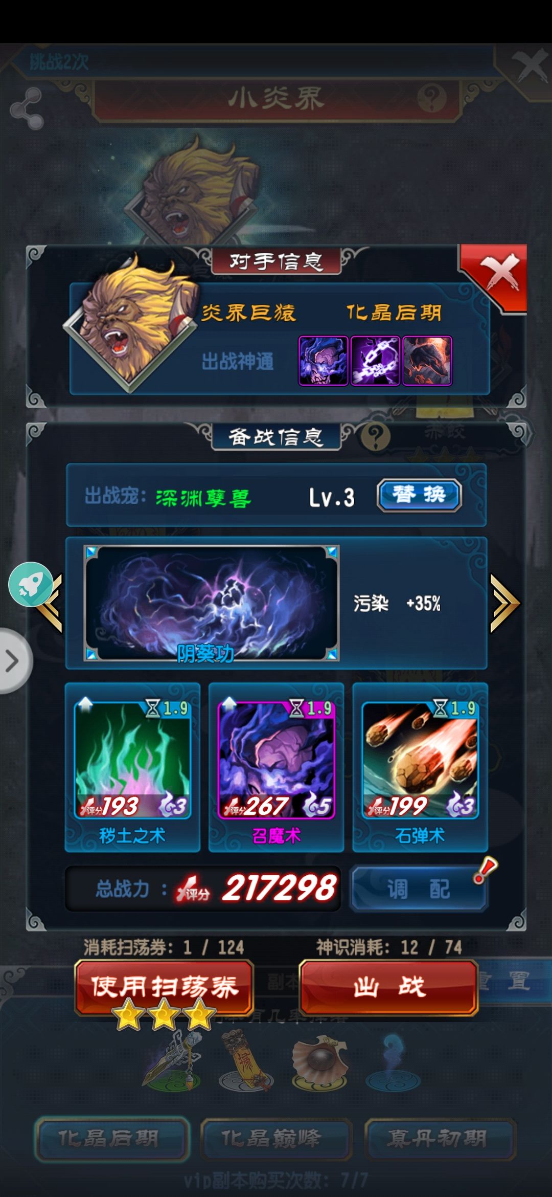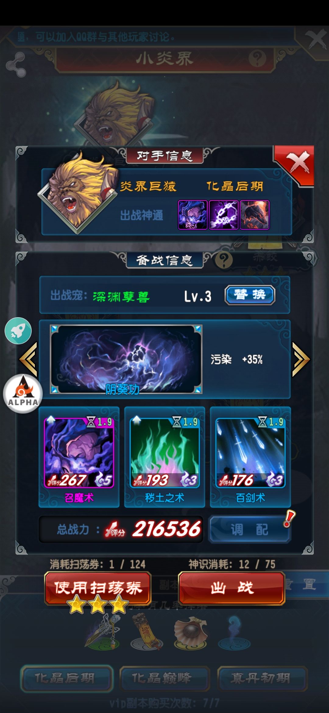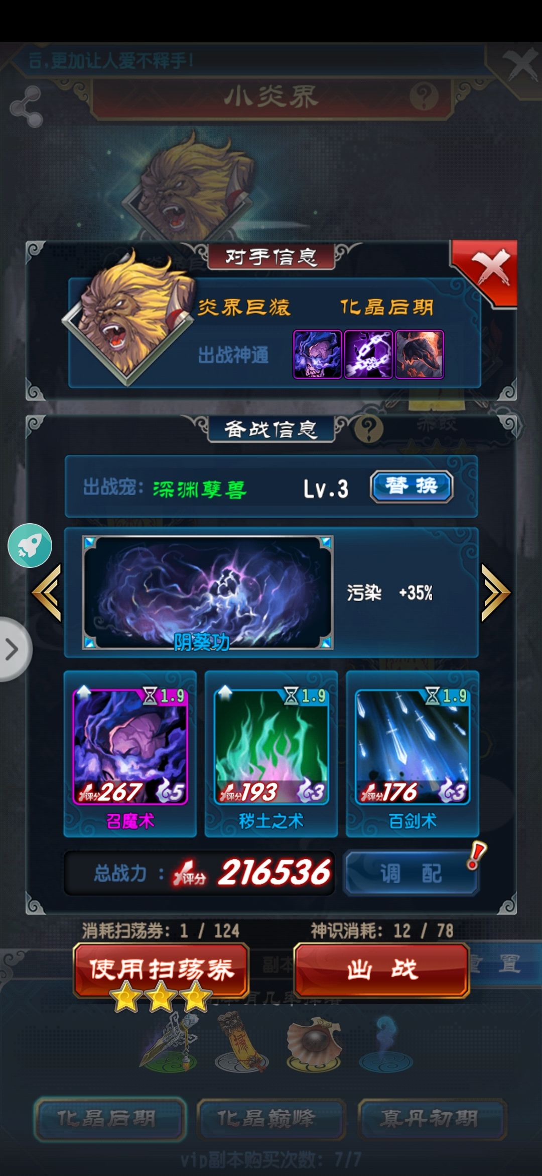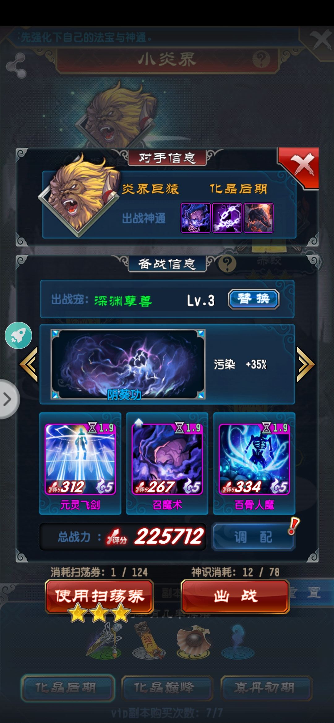 一般起手加速甲烈焰旗后续满级落金沙剑 满级青月 满级金月以及瞬击的三种扇子银空化乌刃等等现阶段没用点生命体修贯穿抗性高级之前基本无解,不过魔法才能打败魔法,各位道友奥利给!