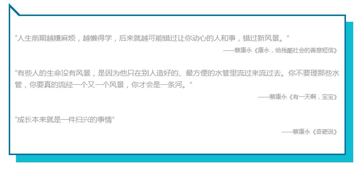 对于成长的态度,康永哥在以往的作品或言语中,无不透露出一种作为过来人的感叹, 是建议、是无奈,是从容,是祝福。