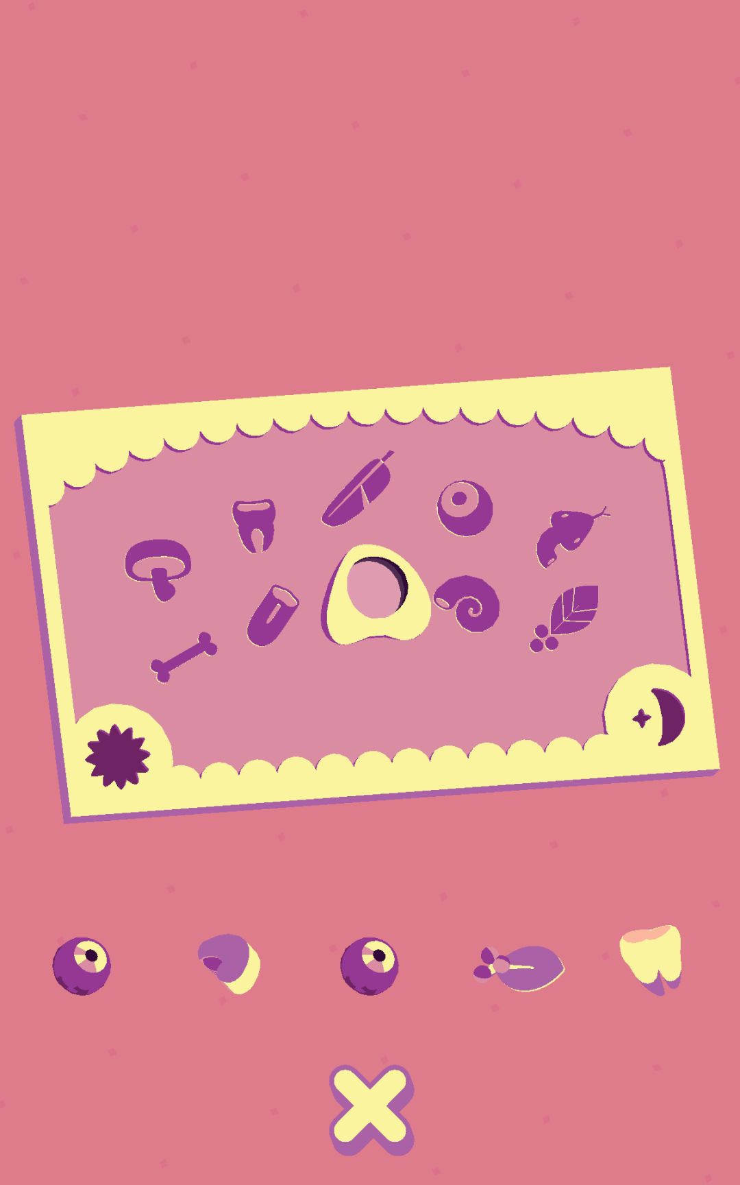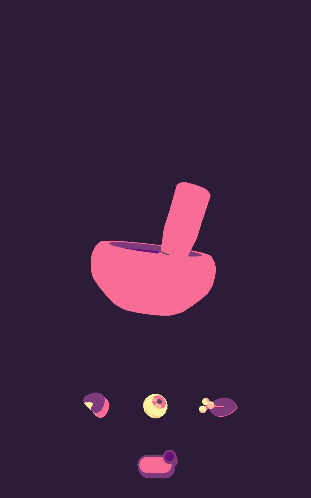 在前面收集蘑菇、眼睛、叶子这三种材料,研磨之后就会变成黄色。黄色才能出现后面的水晶球和这块石板,点击石板会出现三种配方,分别按照三种配方进行研磨,就会打开不同的世界。