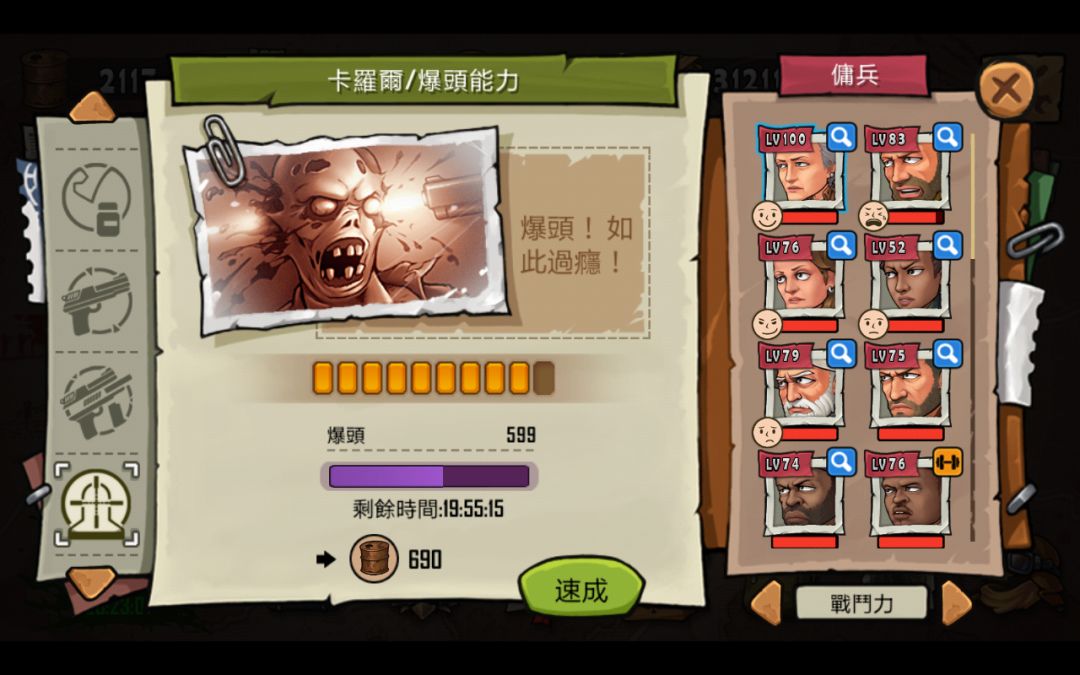 已经无压力存活18天,粮食根本用不完,子弹基本无限,收藏物出了就买。秘诀么很简单。卡罗尔,单人无限刷,中心广场。开局主要升卡罗尔,书,药,暴头,全部伺候着。别去推什么图,浪费时间还容易挂人。