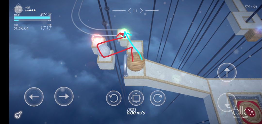 下来就是这个地方,木球最好走蓝色的那条路线,红色路线虽然看起来稳实际上更容易翻车