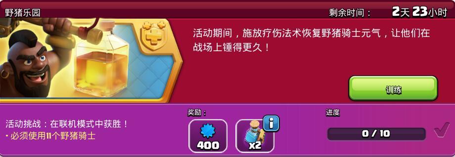 野猪乐园活动是部落冲突游戏内部的众多福利活动之一,活动期间内完成即可领取相应的活动奖励。
