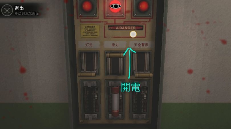 接下來是重點,一定要先到4F路的盡頭調查電閘把下面的保險絲放到最右側的「安全警報」那裏 且不能為打開狀態(否則之後的劇情QTE必定GAME OVER)