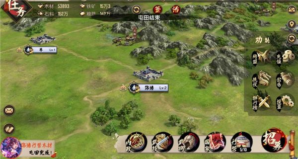 当完成任务或屯田、练兵、征兵结束后,屏幕左下角会收到提醒。