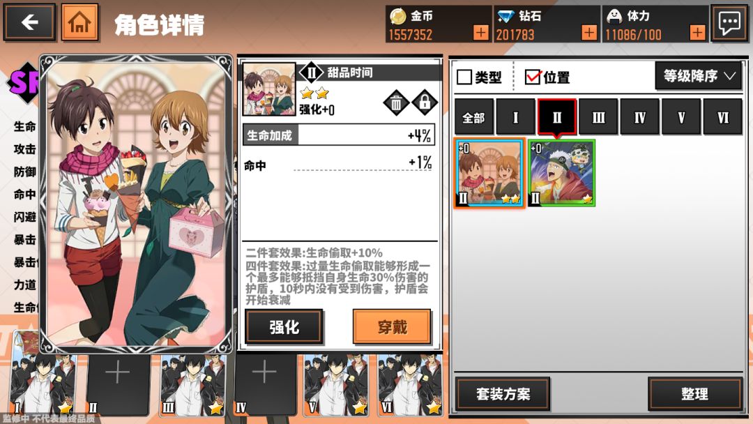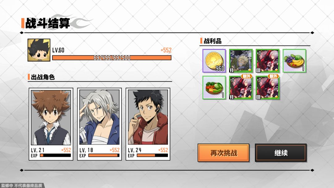 在制作这个玩法奖励的时候,我们考虑到在日常游戏中玩家对角色实力升级最大的需求来自于辅助卡,因为辅助卡是可以较为直观体现出角色实力加成的,比如阿纲是因为在动画中使用吸收敌人能量的招式(零地点突破.改),所以他的辅助卡搭配比较适合带有“HP吸取”的效果(嗯云小逗亲测好用!)。