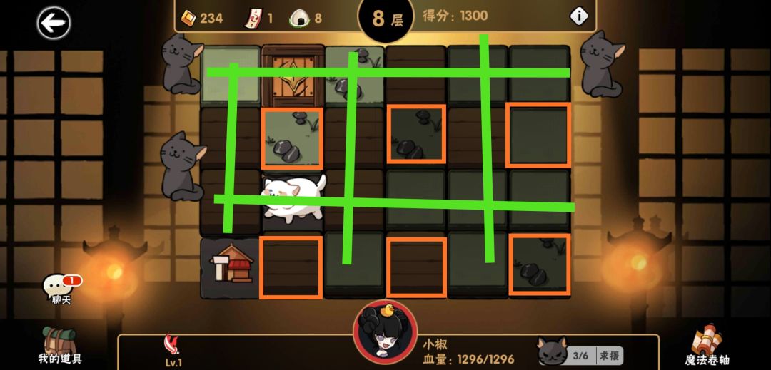 留下橙色的位置,按顺序翻开绿色线,绿线上boss遇到就清理掉