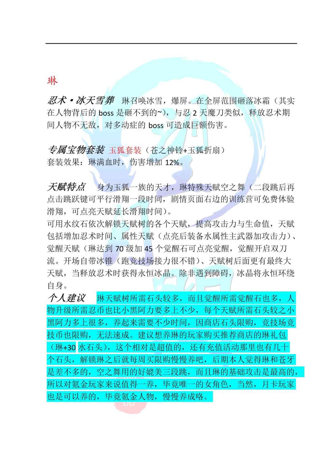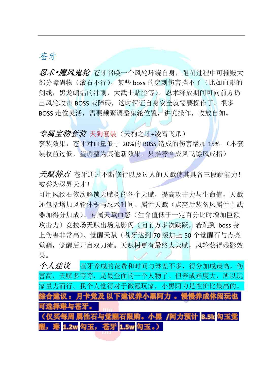重点!长期养成玩家建议优先玩自带三段跳的苍牙,其次自带滑行的琳。二选一主养。