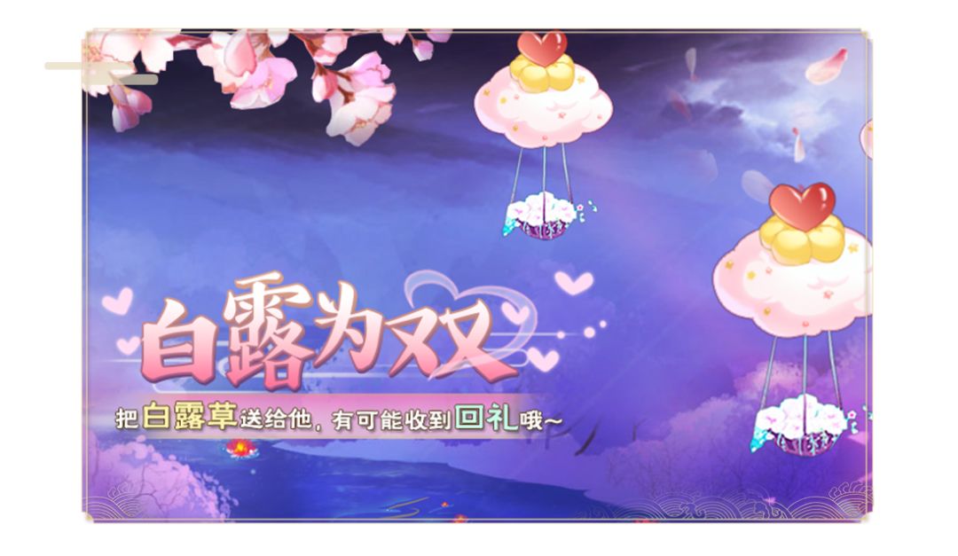 ·白露草可赠送给心仪的男神,男神会增加对你的好感度,还有概率可获得男神的回礼喔~