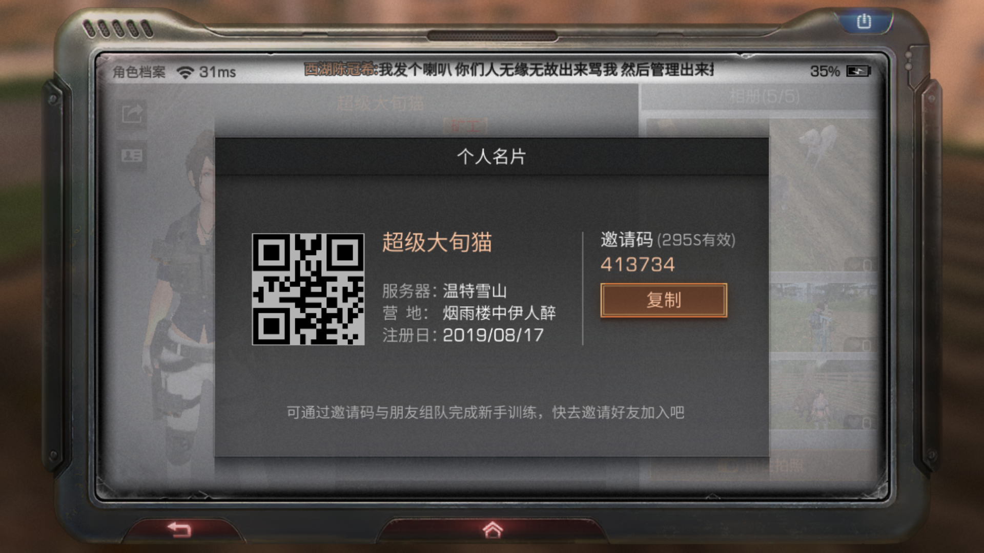 肝了11天明日之后,发现不充钱不行啊,今天又被屠营了。还是个氪金5庄的。营地都蒸汽时代了。
