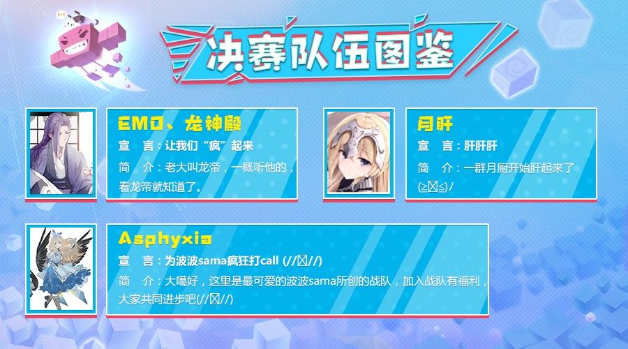 再次恭喜以上获奖的队伍,最后我们一起来回顾下参赛前,决赛队伍的参赛宣言吧!各位慕名而来的小方块们,可以在战队搜索框中直接搜索队伍名字,加入战队哦!