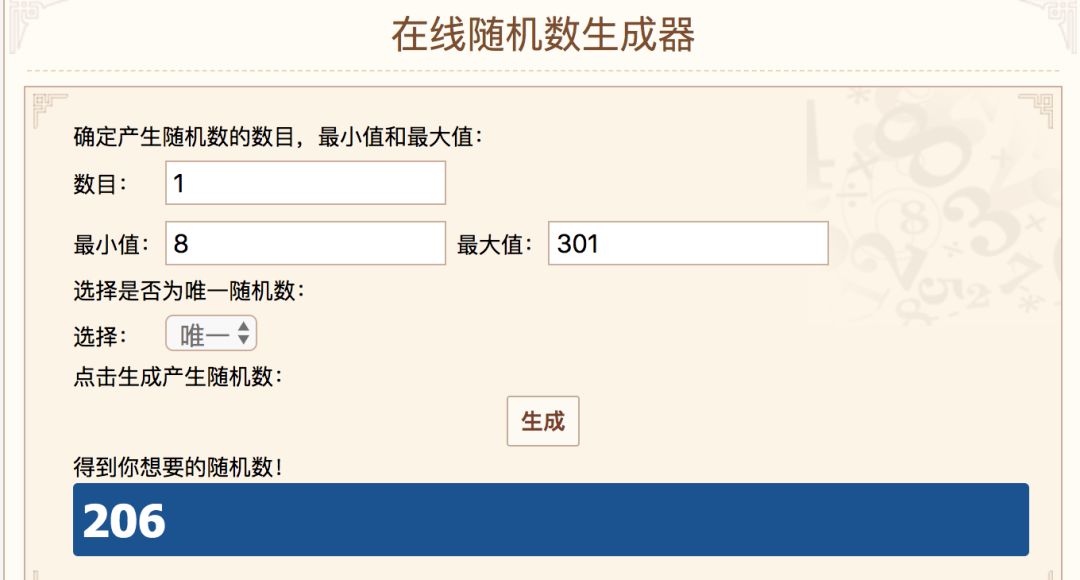 2. 剩余回帖将通过“在线随机数生成器”随机抽取。