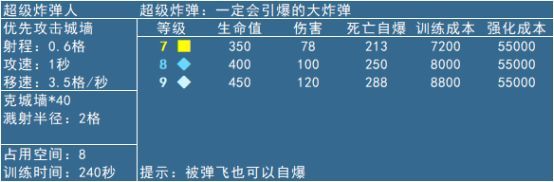 相比于原版,超级版的生命值明显高于原版,那么代表它不再害怕隐形炸弹和地狱塔,而且更快的移动速度也能更加接近城墙,最重要的是它更大的爆炸范围,也就能炸到更多城墙。