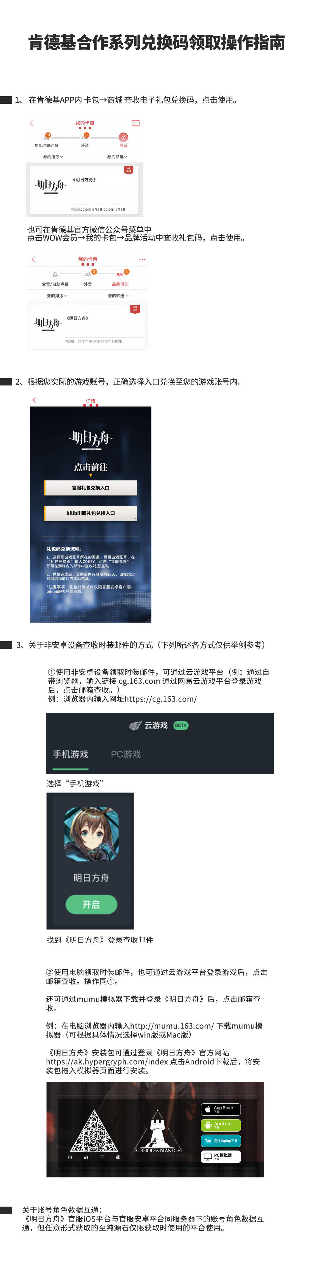 活动说明:活动时间内,通过肯德基APP或微信小程序“肯德基WOW会员”功能,进入【大神卡】主题页,购买或续费《明日方舟》限定版大神卡,即可获得“《明日方舟》KFC合作礼包”兑换码一份(唯一渠道发放)。电子礼包兑换码将在大神卡订单完成后发放至用户肯德基APP内的“我的卡包”。