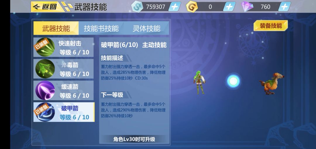 四种武器技能:输出,减速,破甲,自成一系,相当实用的搭配