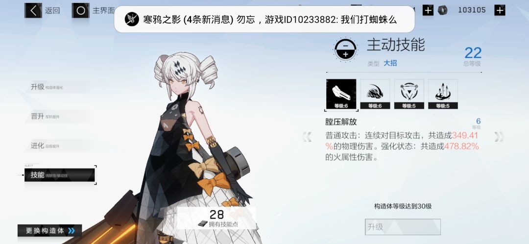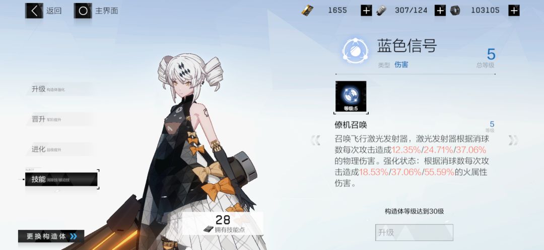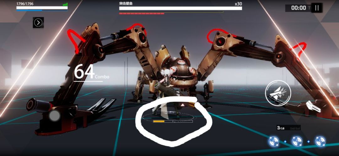 了解完了我们就来说一下她的玩法,我想玩她的玩家都会觉得她的热能消耗过快,所以这里建议前面多集三消来补充热能,切记普攻是没有热能的不是三消也没有热能,每个三消40点热能2个三消就可以强化,这里留意一下,蓝消 因为蓝色是不用三消也可以召唤飞行器帮你攻击的,当你用了2个三消开启强化模式后,蓝色没有三消就没必要强求了,因为开启强化模式每秒需要消耗3点热能。直接开启蓝消可以召唤飞行器,飞行器每次攻击可以提供2点热能攻速是一秒一次,飞行器存在五秒,等于这五秒每秒消耗一点热能,有更多的时间来三消补充热能,然后就可以更长时间处于处于强化状态,有大招后不要着急用掉等着热能快没了以后在开,而且她的技能都是群攻清小怪是很快的,这样打每一关都可以很快打到boos,保持强化状态来打boos的化是很快的