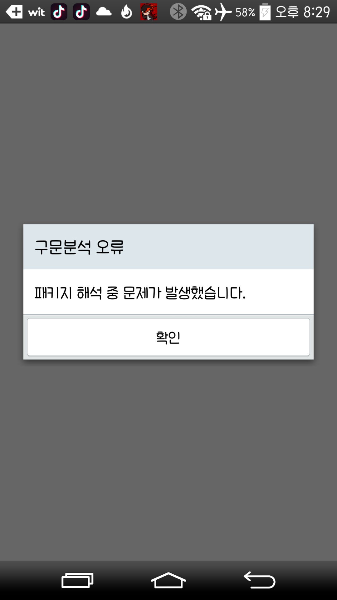 자꾸 '패키지해석중문제가발생했다떠요'