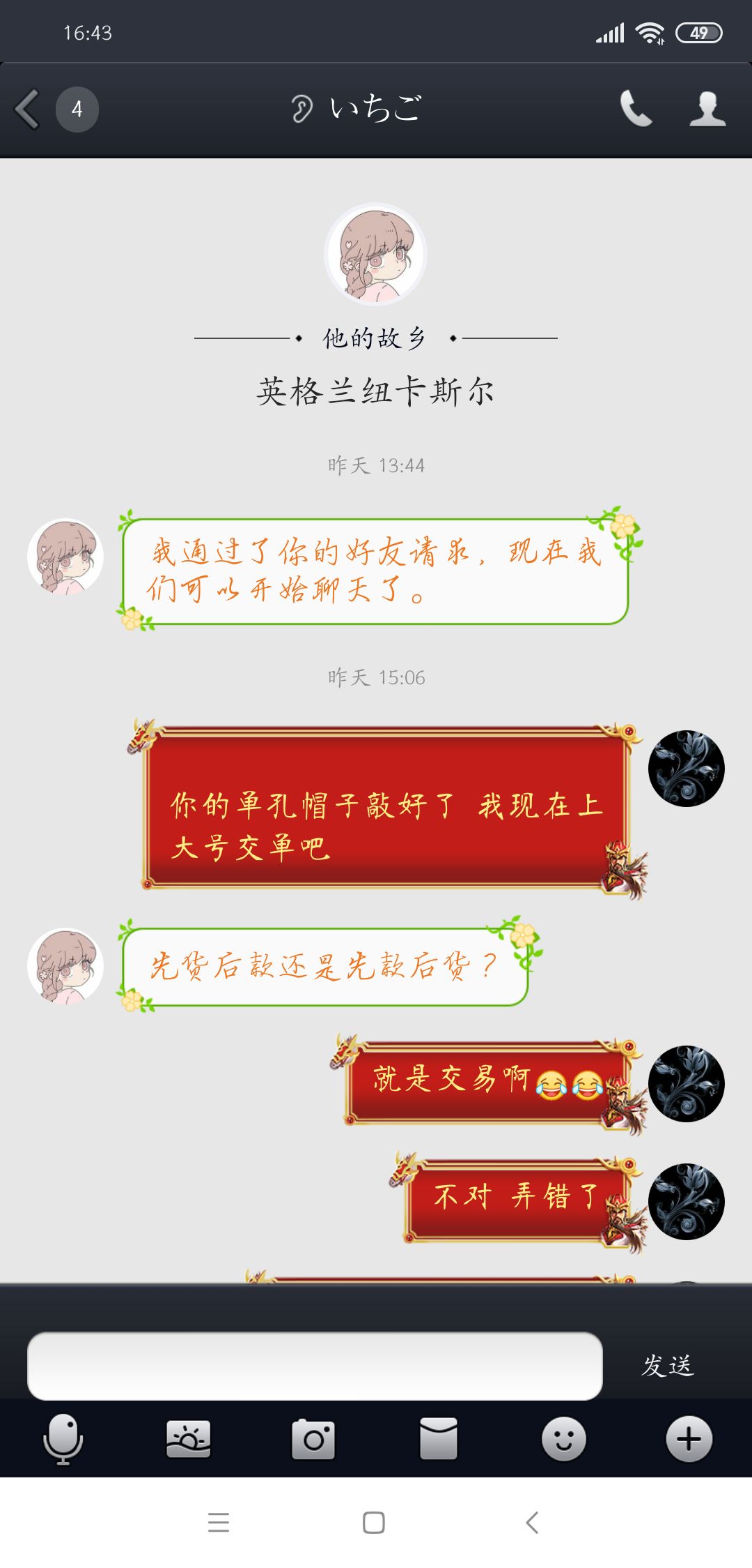 这件单孔是一个游戏ID叫 : SWEET 的家伙出的单 敲好后联系他交单 说要软付 可以 然后又说要晚上 也行 后来昨天晚上我忘记了 他也没联系我...