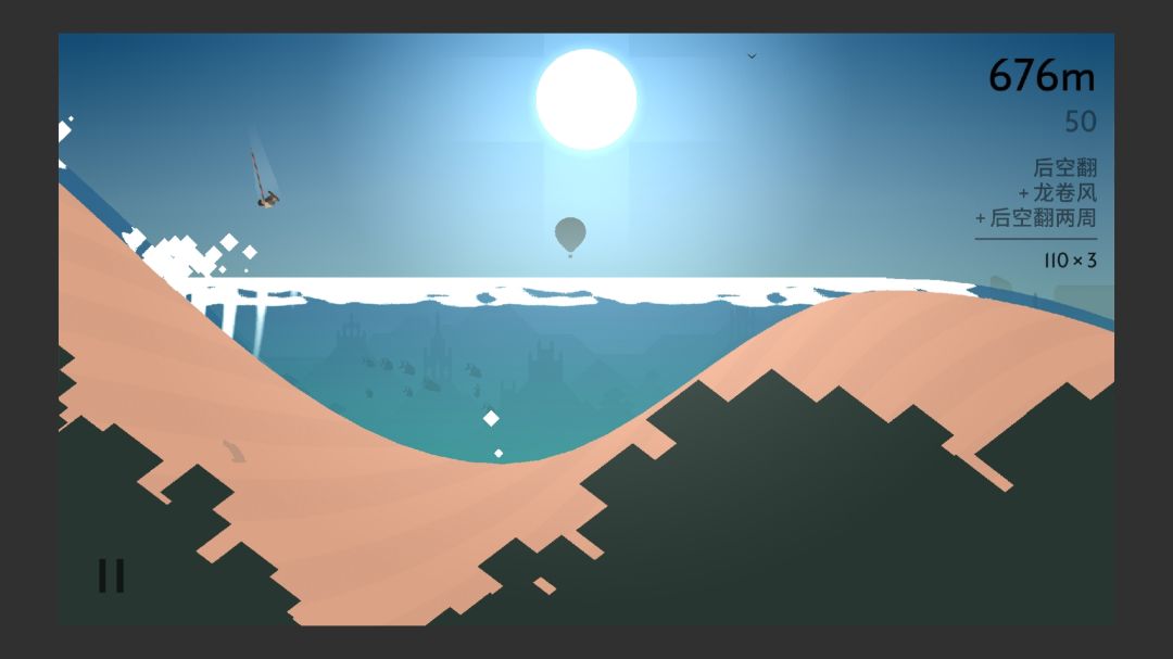 阿尔托是一款横版跑酷游戏,和前面三种不同,阿尔托的世界,是真正平和而富有诗意的,无论是滑沙还是滑雪,操作中的顺滑感给了玩家无比的治愈,是一款几分钟就能让你平静下来的游戏