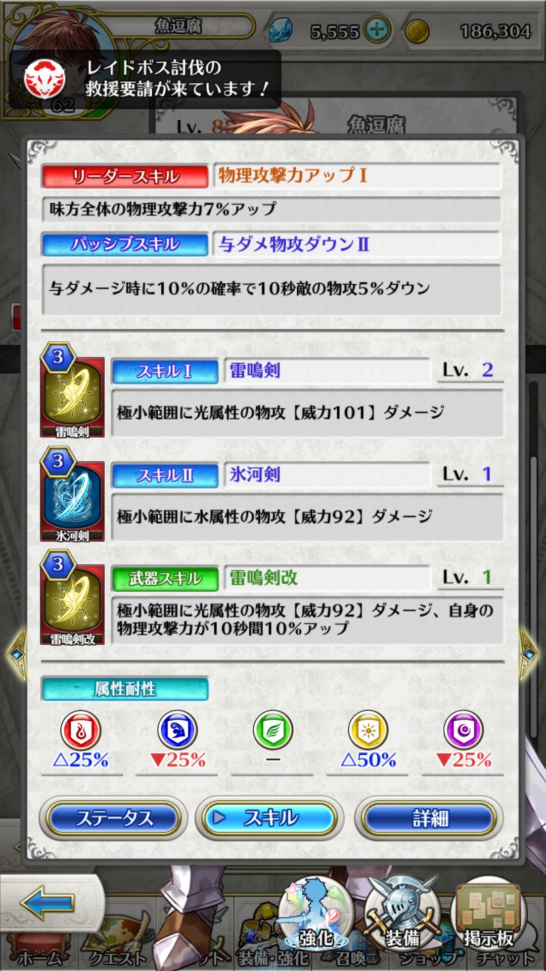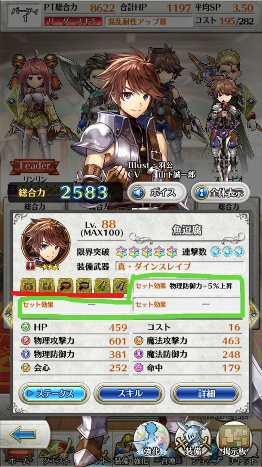 这个界面是技能界面,第一项是队长技能,当你把你的角色设置为你队伍的第一人时,技能激活。第二项是被动技能。三四项为角色的技能卡,固定。第五项是武器附带的效果,随着角色武器的更换而改变,当角色没有武器的时候会变成当前职业的一次强化伤害的攻击