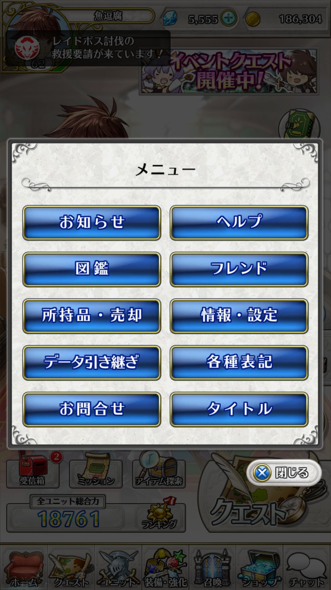 通知(公告) 帮助(游戏的所有信息)
